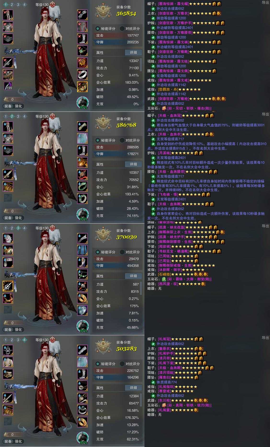【装备】130级,傲血战意PVP565854,傲血战意PVE586768,铁牢律PVE370030,傲血战意PVE503283