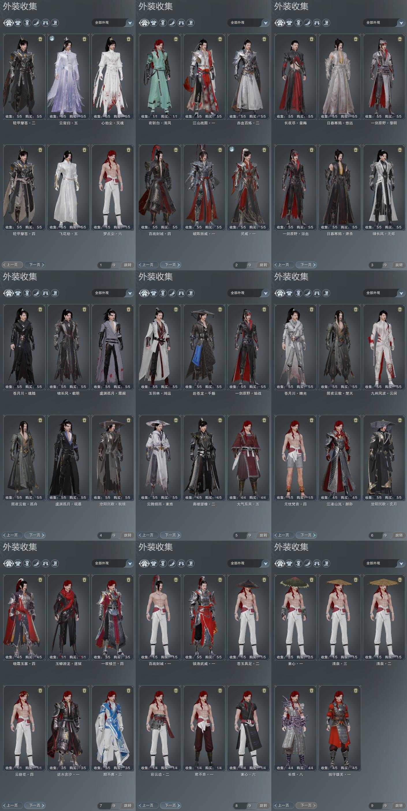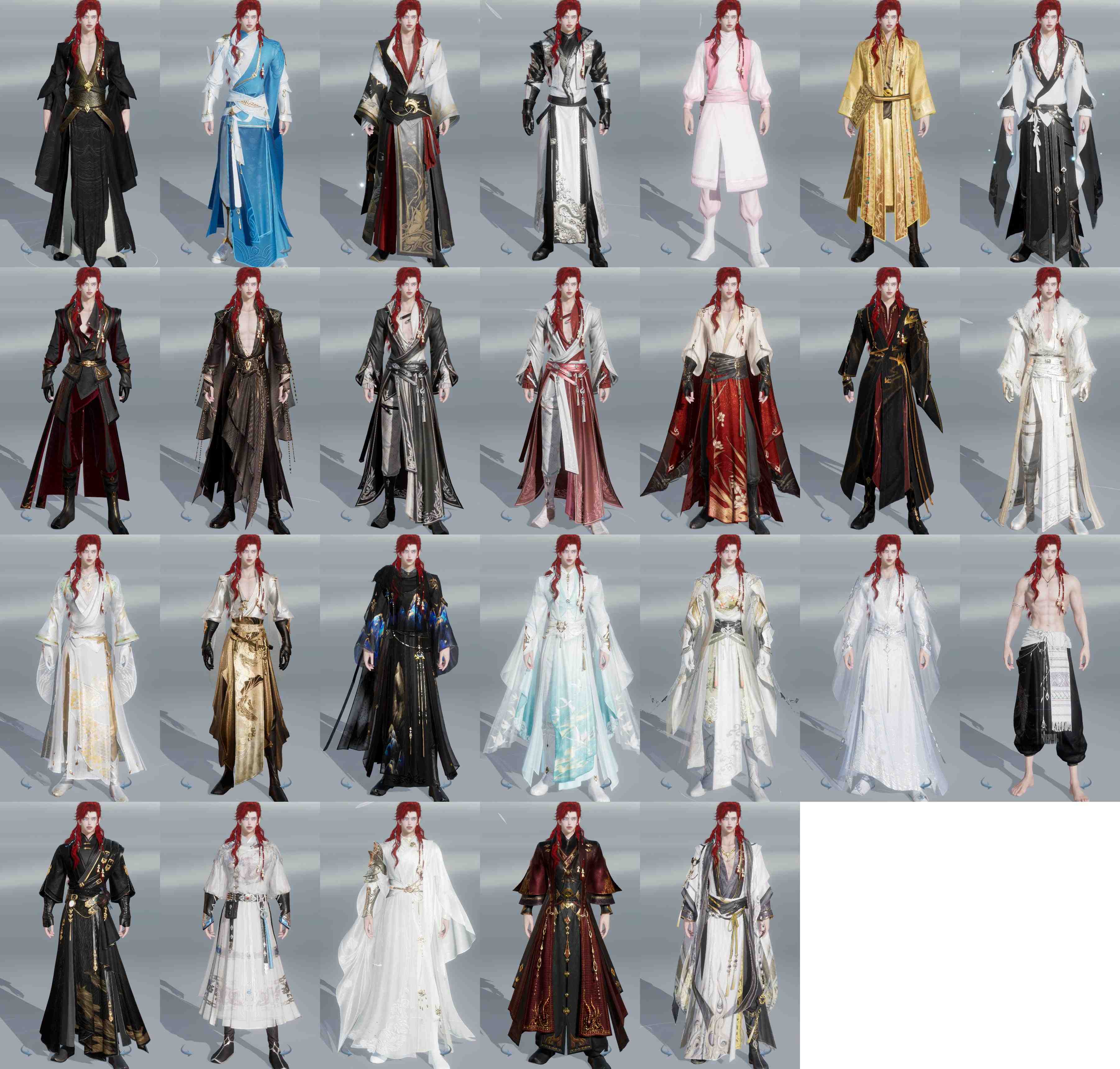 限时限量:[霆螭玄苍, 黑红西风, 烟花套, 十二周年工作服, 客行逍遥夜影, 客行逍遥撷英, 小红龙衣, 十三周年成衣, 万川青绿黛瑾, 十四周年工作服, 云闲归鹤]