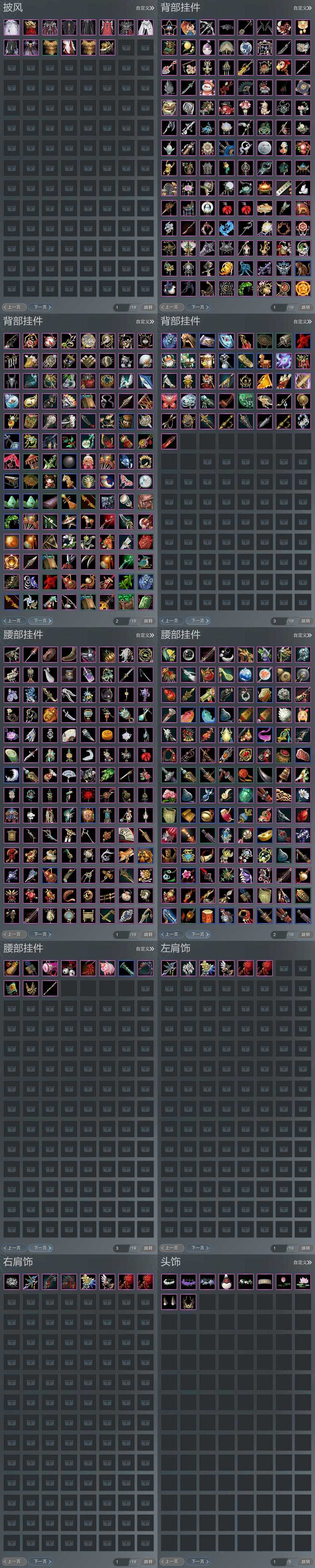 【背挂】265个[阴阳剑, 红黑白路, 夜幕星河, 喷火小熊猫, 石剑溟灵, 黑红尘挂件, 白狮烟斗, 小金龙挂件, 莲台盒背挂, 瓷盒背挂]