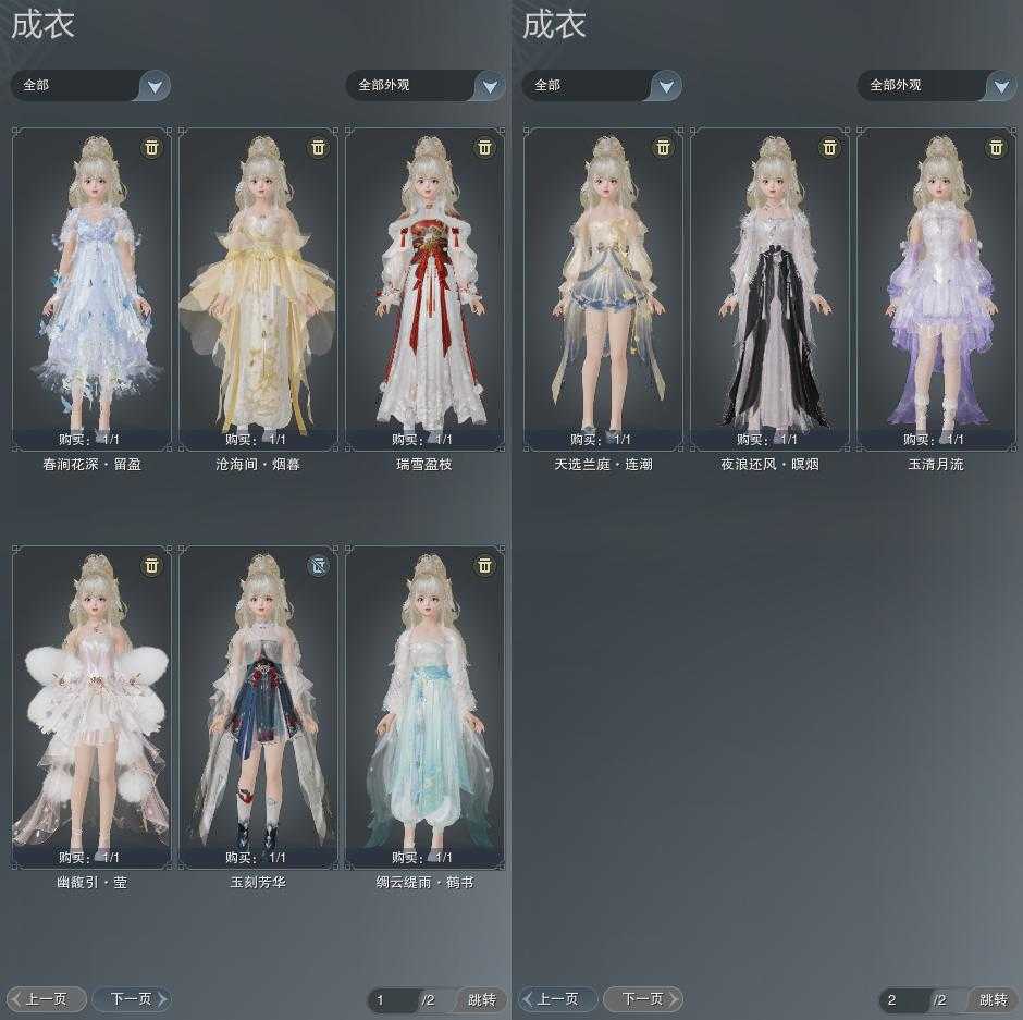 【成衣】总计9件,单盒成衣4件,限时限量3件,商城2件,下架0件