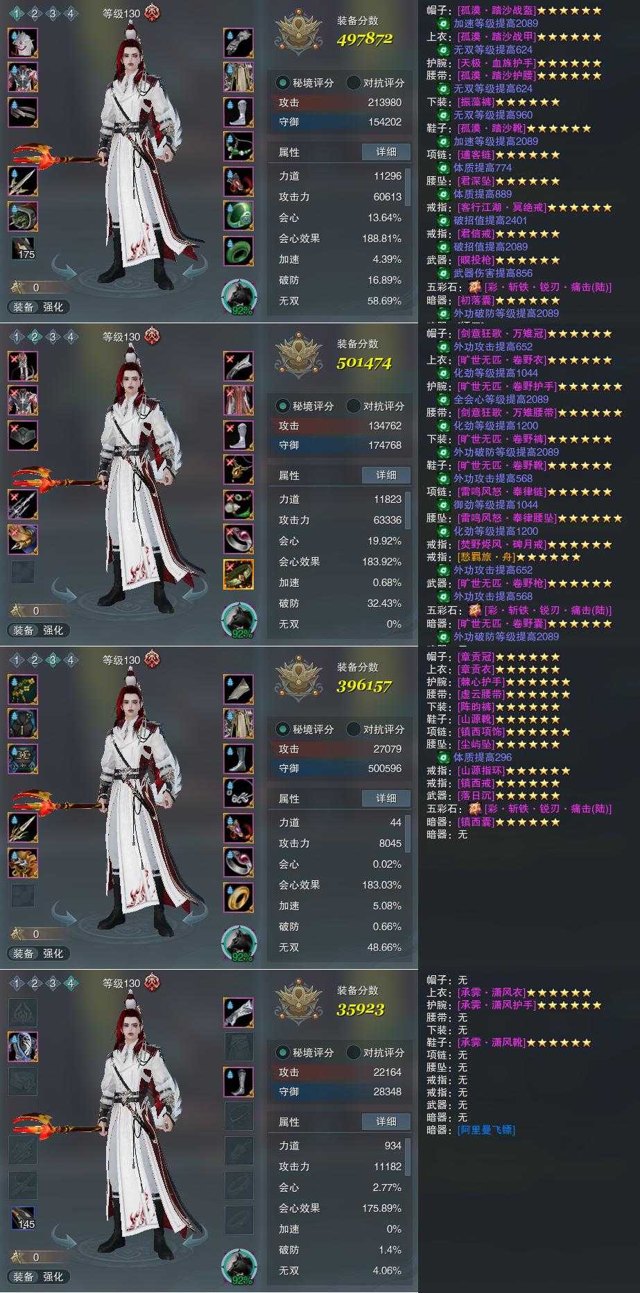 【装备】130级,傲血战意PVE497872,傲血战意PVP501474,铁牢律PVE396157,装备四35923