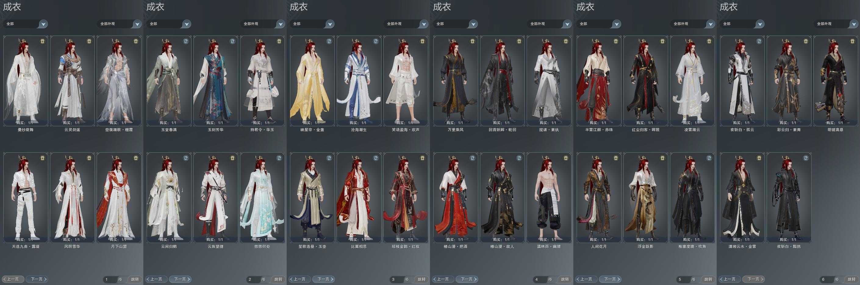 单盒成衣:[丝路盒衣, 踏云盒衣, 一代乘风衣, 唐风玉壶衣, 黑红尘衣, 红椿山衣, 白持君衣, 扇盒衣]
