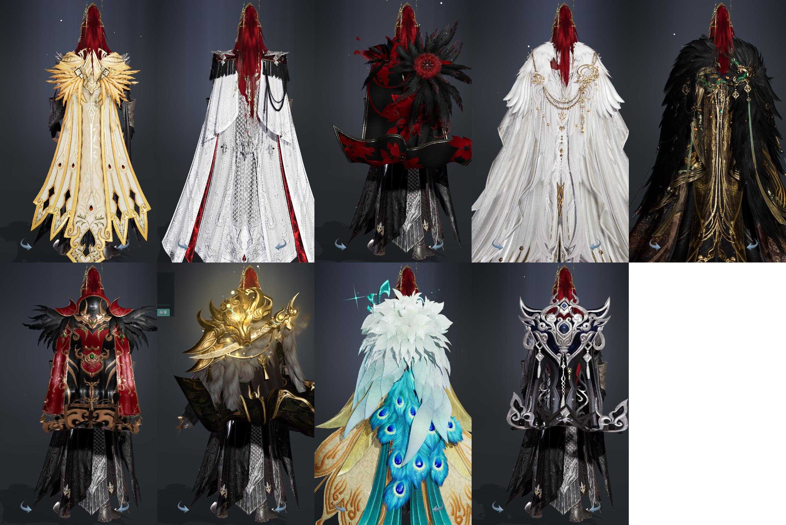 【披风】11个,[7W资历披风, 14W资历披风, 三山披风, 三代银黑, 孔雀披风, 虎盒披风, 策二披风, 狼头, 双十二黑披风]