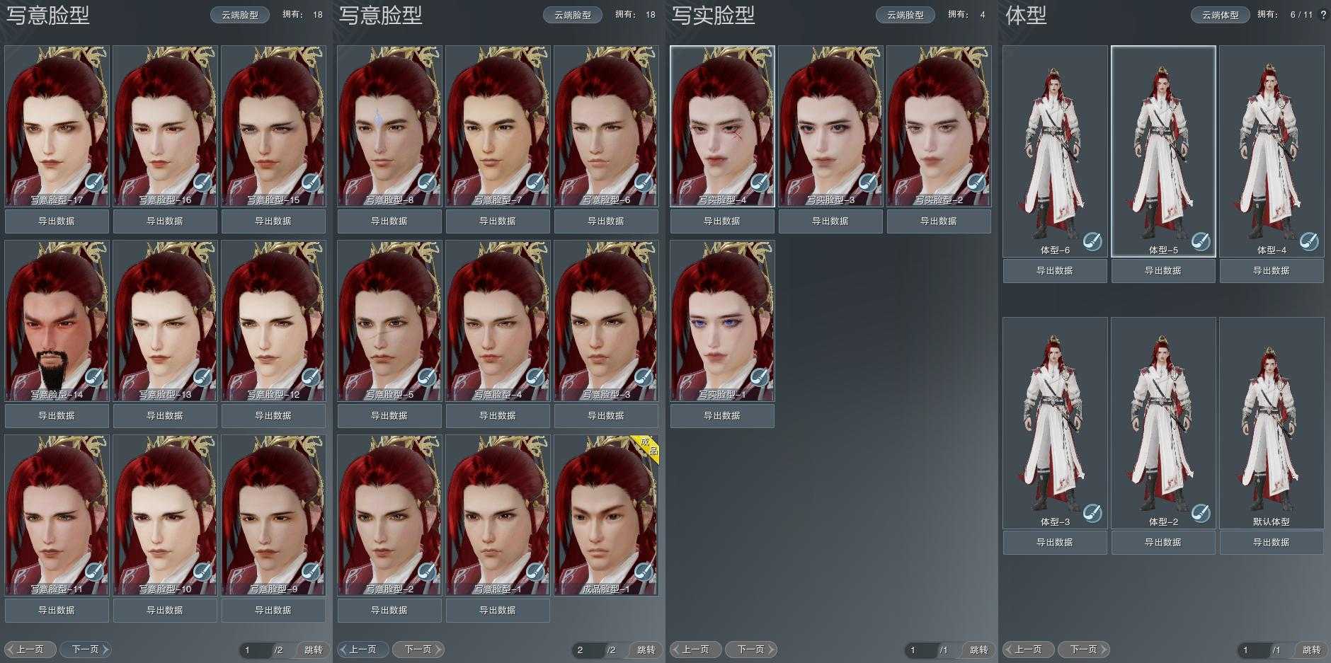 【捏脸】写意脸型18个,写实脸型4个,体型6个