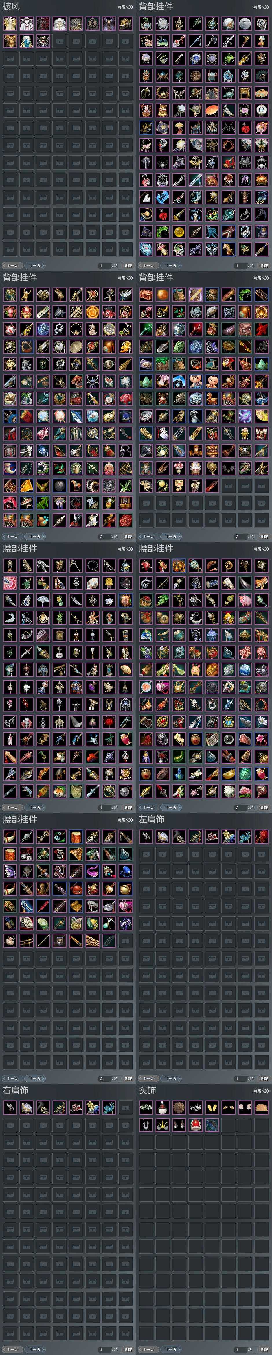 【背挂】317个[阴阳剑, 红黑白路, 白蛟腹, 夜幕星河, 小金龙挂件, 芙蓉挂件, 九七背挂, 仙剑盒背挂]