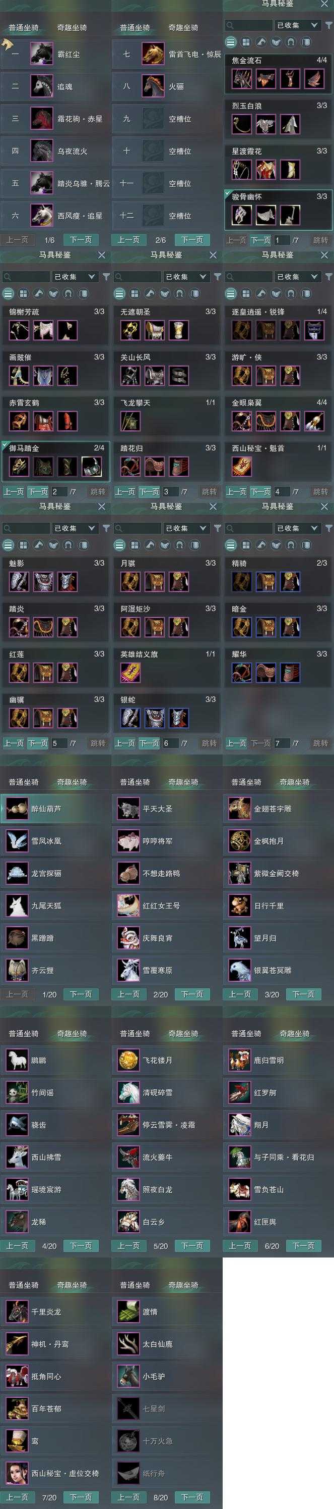 【坐骑】8个[踏炎腾云, 西风瘦追星, 霜花驹赤星, 霸红尘, 雷首飞电惊辰]