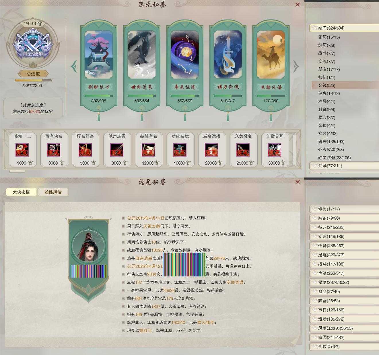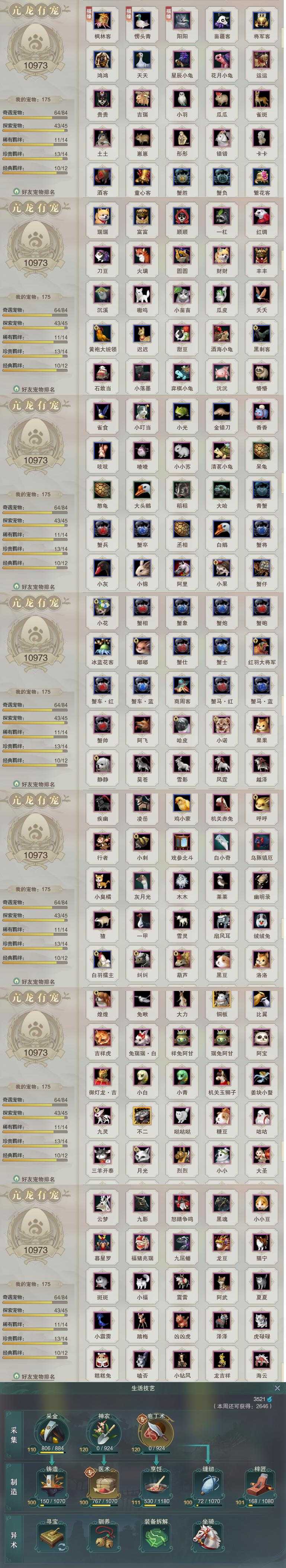 【同伴】沈剑心85级境界壹,沐晴柔83级境界壹,燕子娘82级境界壹,李逍遥76级境界壹,茸茸73级境界壹,费大劲70级境界壹,温折枝64级境界壹,年小鹿63级境界壹,温辞秋61级境界壹,李星云52级境界壹,年小熊1级境界壹