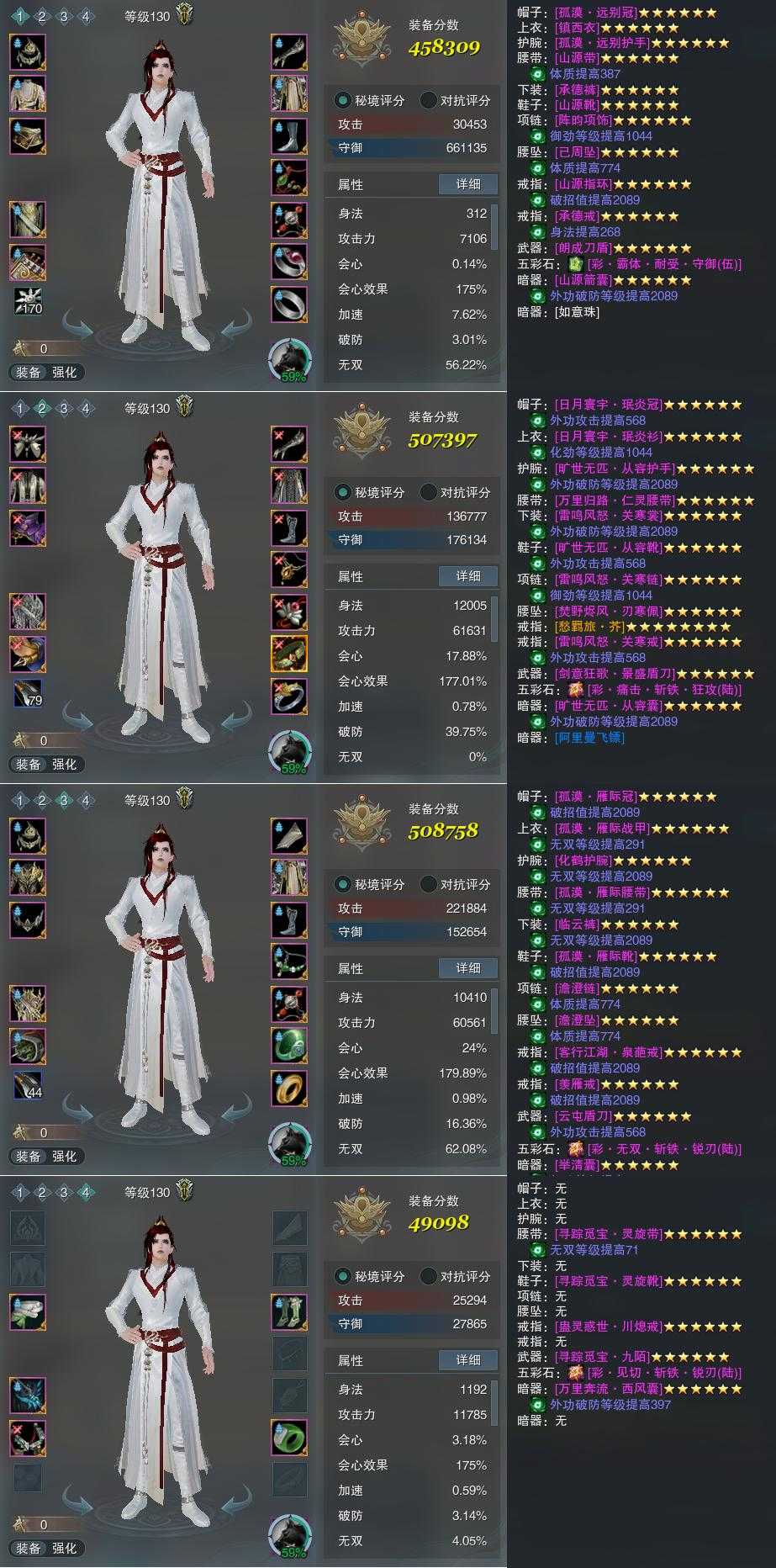 【装备】130级,铁骨衣PVE458309,分山劲PVP507397,分山劲PVE508758,装备四49098
