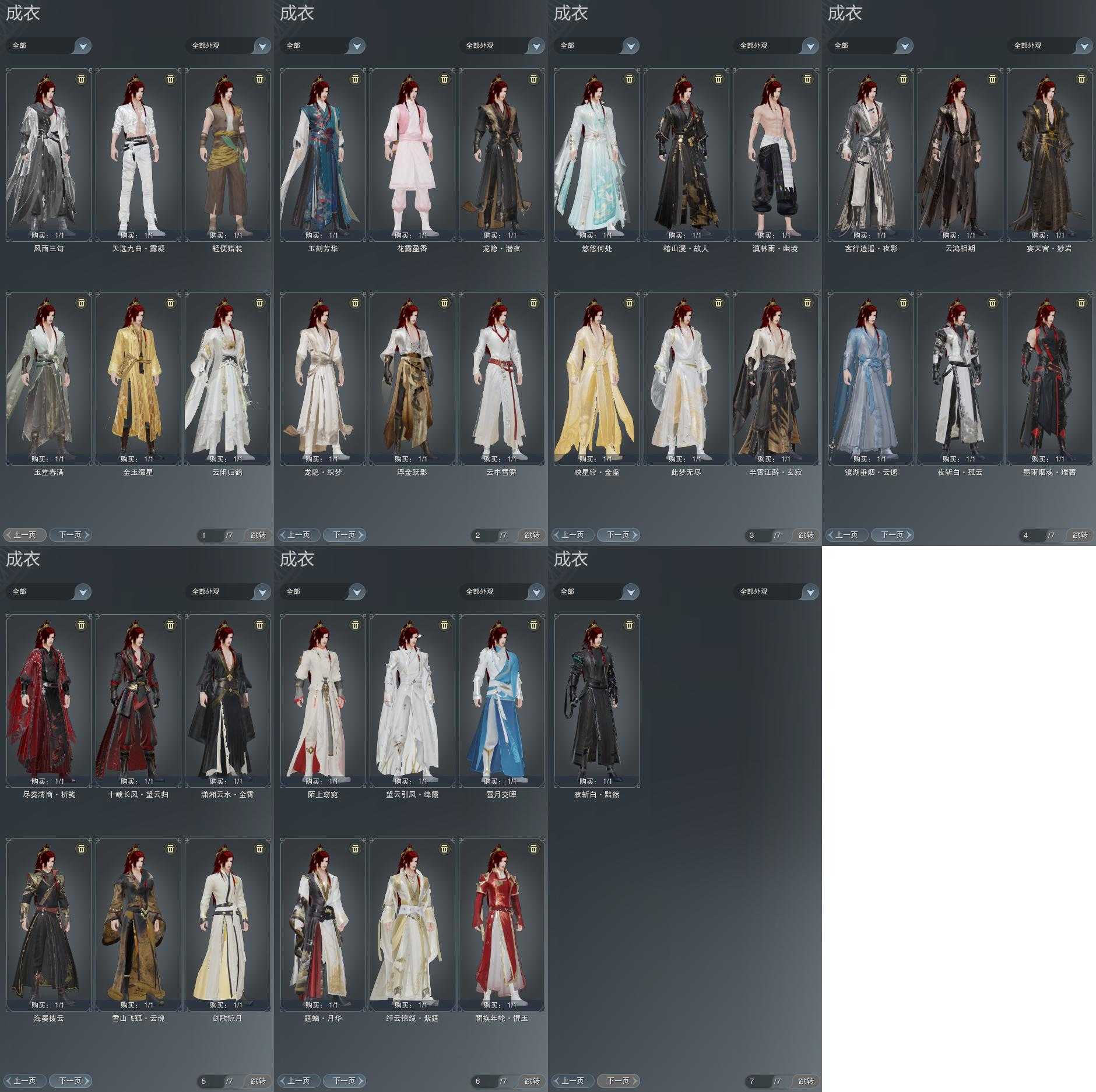 限时限量:[望云绛霞, 霆螭月华, 十三万资历衣, 烟花套, 镜湖云遥, 十二周年工作服, 客行逍遥夜影, 小黑龙衣, 十三周年成衣, 十四周年工作服, 云闲归鹤]