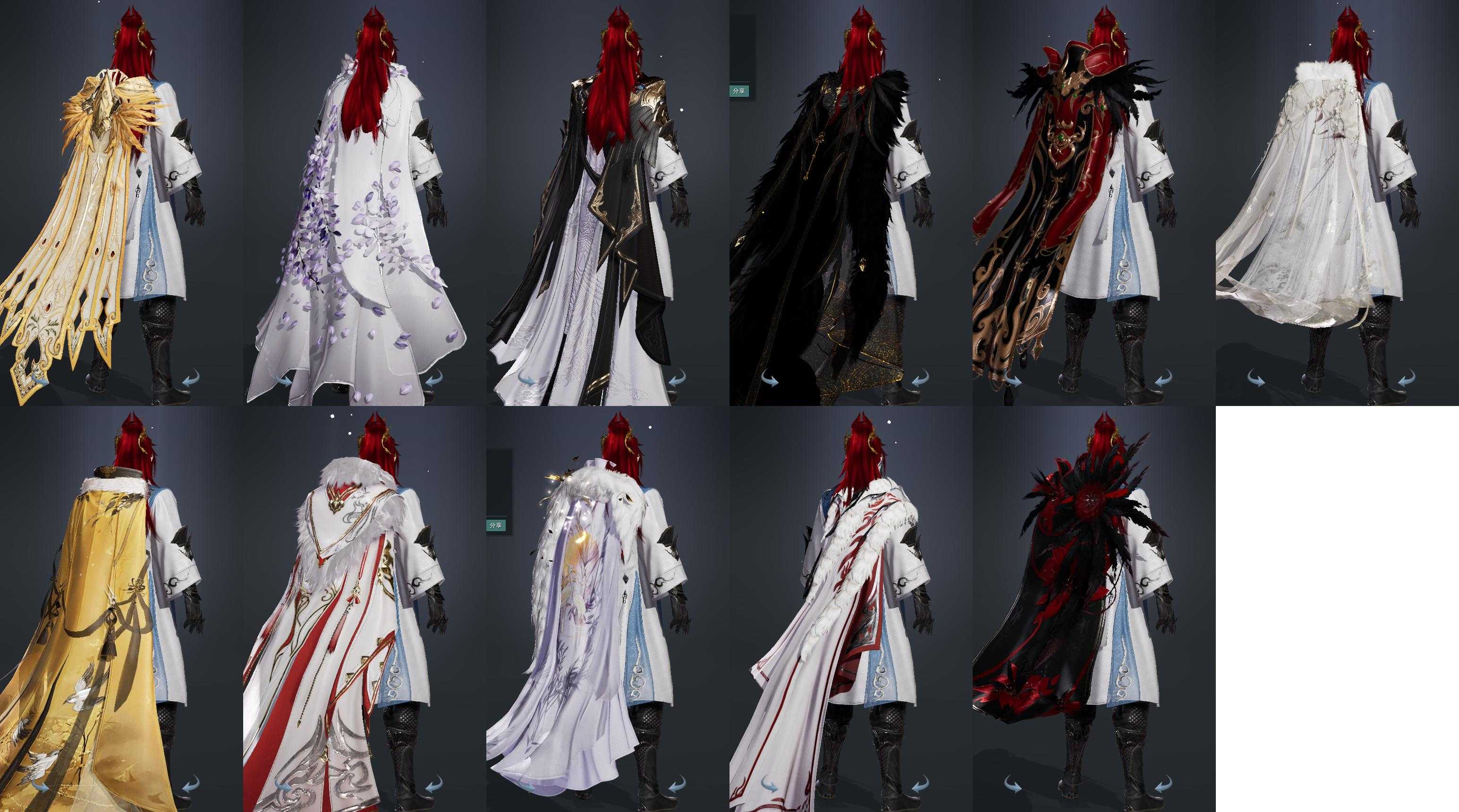 【披风】20个,[衍天预热披风, 7W资历披风, 一代恶人, 14W资历披风, 三山披风, 奇遇披风, 粉盒子披风, 叽盒子披风, 猪盒子披风, 白山河, 黑狐裘]