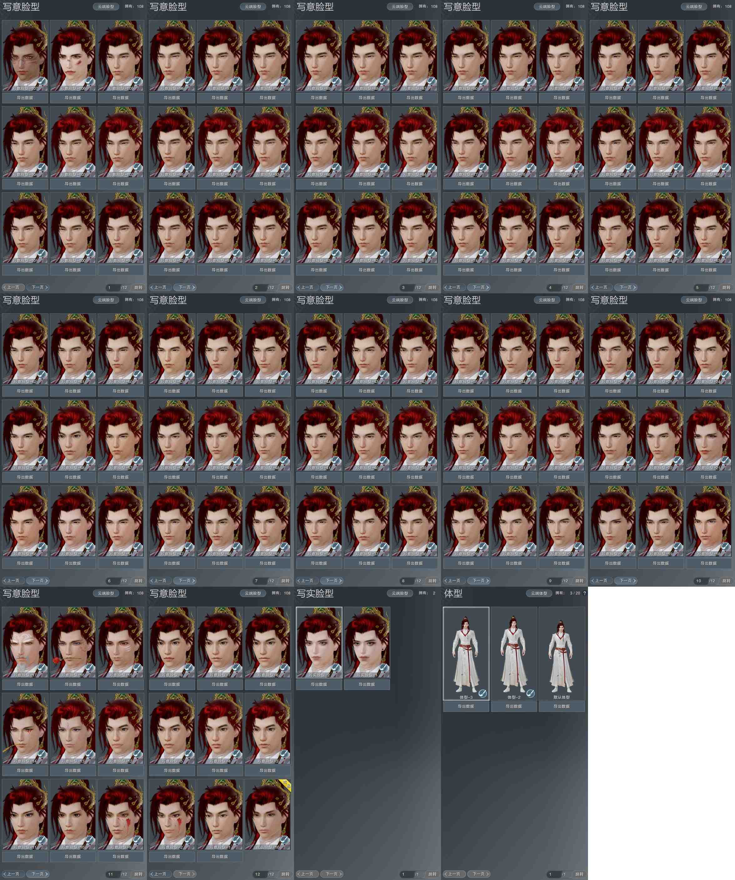 【捏脸】写意脸型108个,写实脸型2个,体型3个