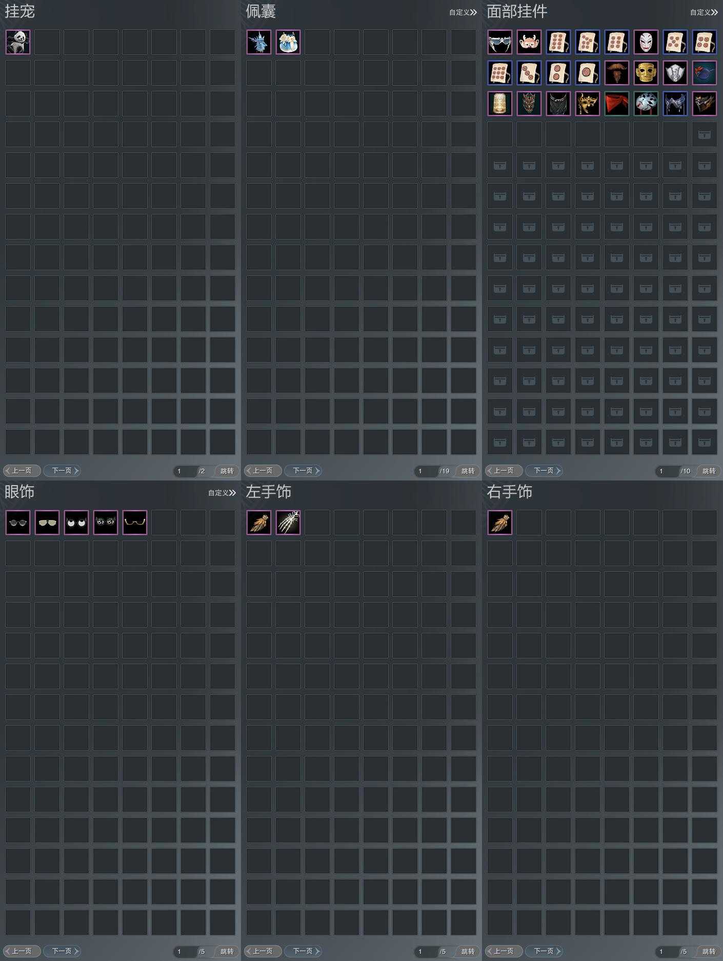 盒子:[雪月盒, 叽盒, 狄盒, 猪盒, 粉盒, 一代花朝白盒(缺背挂), 白龙隐(豪)]
