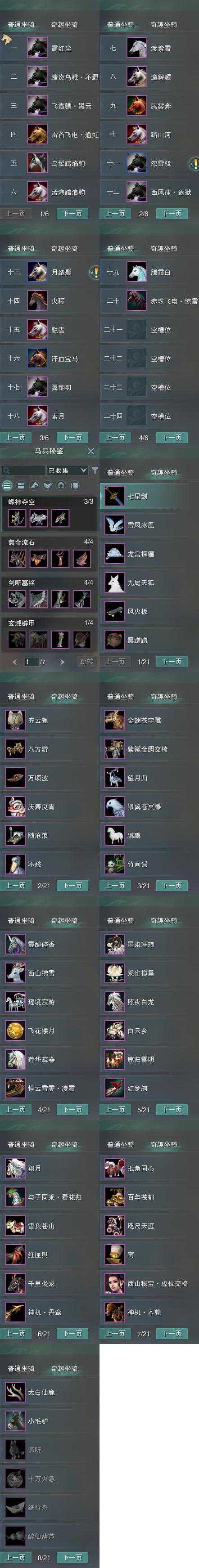 【坐骑】20个[踏炎不羁, 赤珠惊雷, 西风瘦逐狱, 飞霞骠黑云, 霸红尘, 雷首飞电逾虹, 乌鬃踏焰驹]